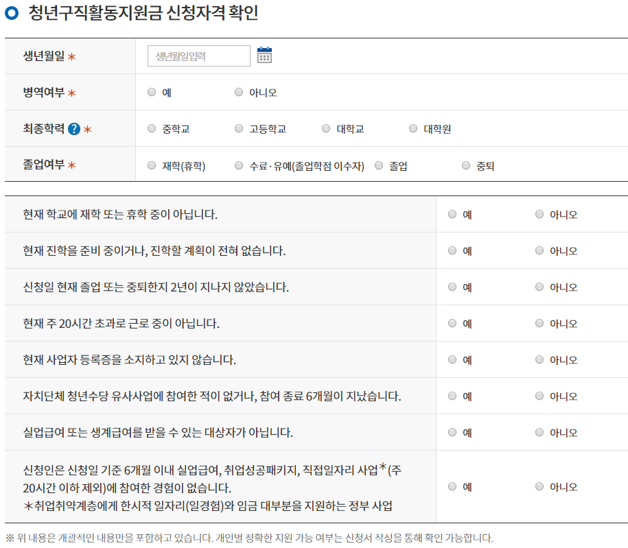 - 신청 시점 기준, 근로시간이 주 20시간 이하인 경우 미취업 인정